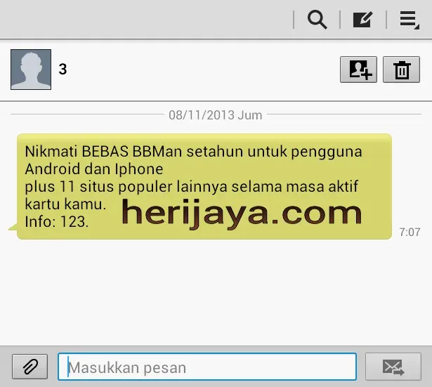 Heri Jaya > Internet · 08 Nov 2013 Ada Paket BBMan di Android Gratis Setahun Pakai Kartu Tri Langsung saja , detil infonya ada di gambar bawah ini : Sarat & ketentuanya serta kekurangannya nanti di update lagi.