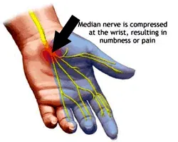 Tanda-tandanya antara lain seperti sering pegal dan atau nyeri pada bagian pergelangan tangan maupun juga jari tangan, terutama pada bagian ibu jari, telunjuk dan jari tengah.