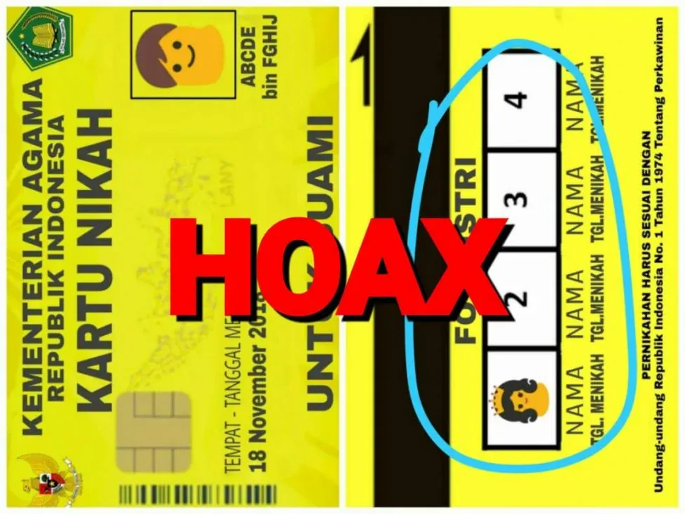 Dirjen Binmas Islam Muhammadiyah Amin memastikan bahwa desain kartu nikah yang beredar itu palsu alias hoax. Bukan desain resmi dari Kemenag.