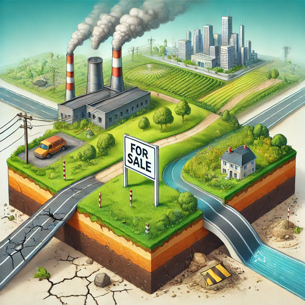 • Pencemaran Lingkungan: Polusi udara, air, atau tanah di area tertentu dapat membuat tanah tersebut kurang diminati.